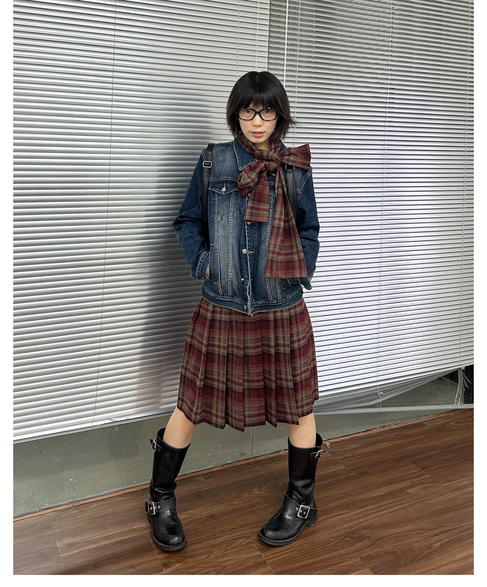 Plaid Skirt and Scarf