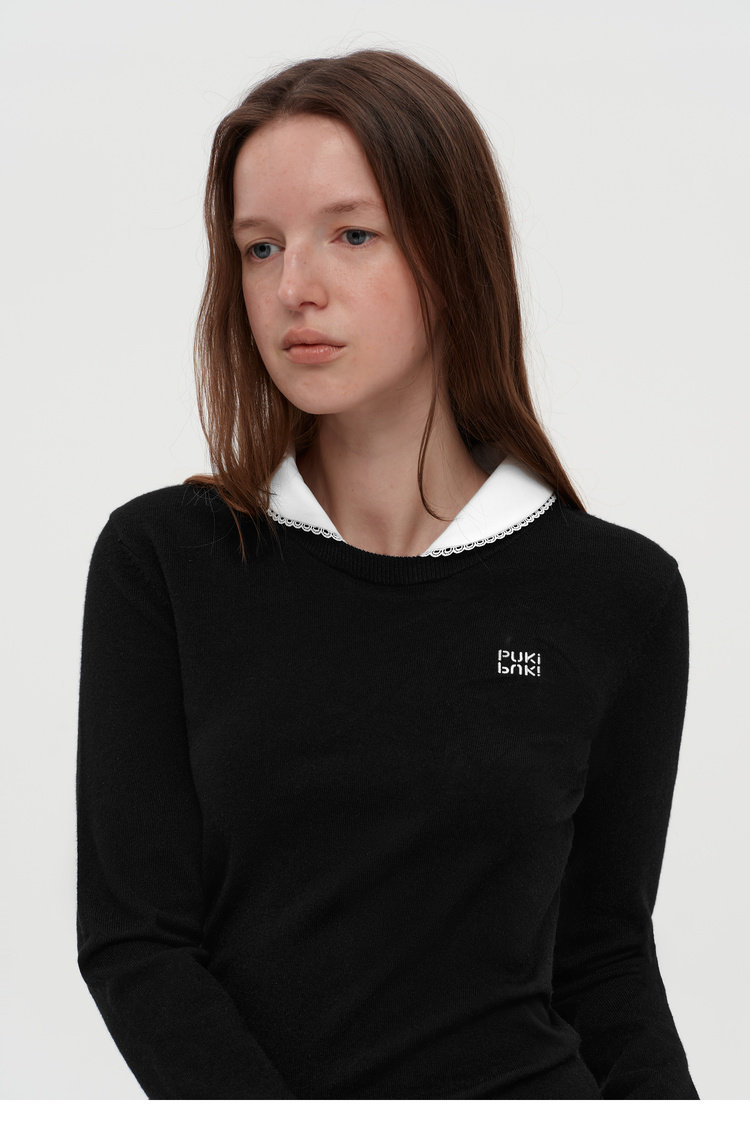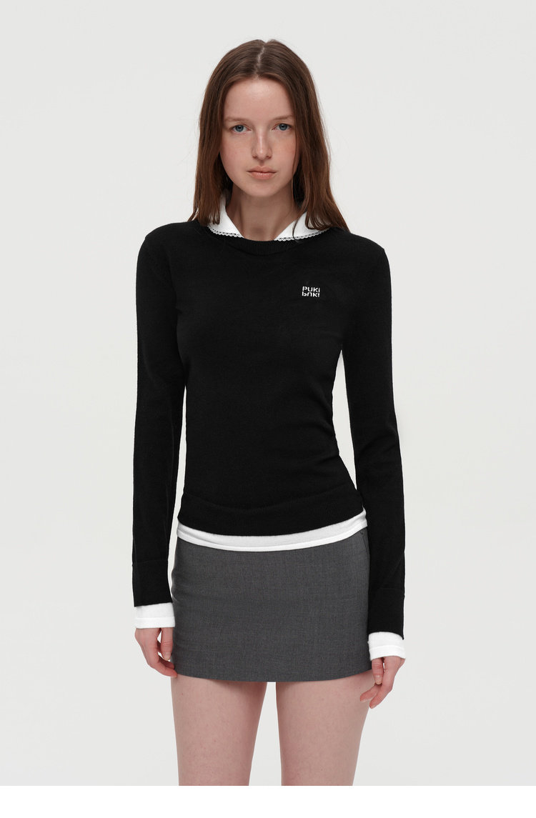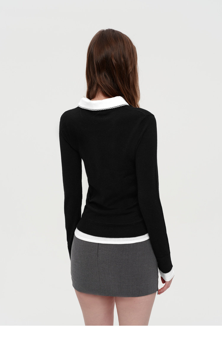 Lace Collar Faux Shirt Sweater